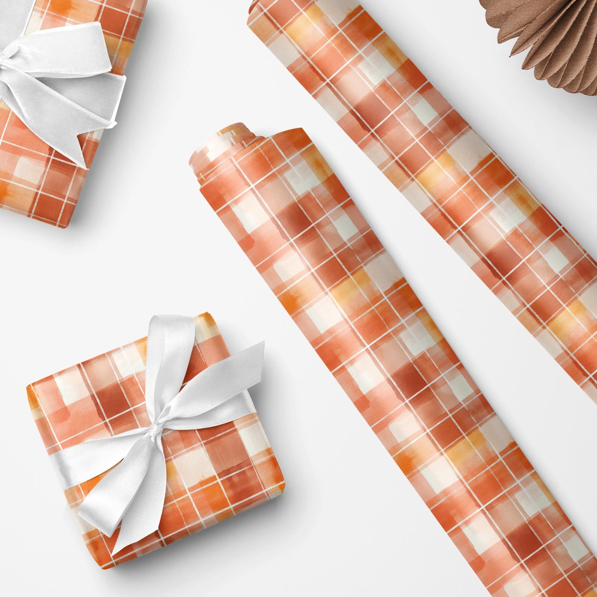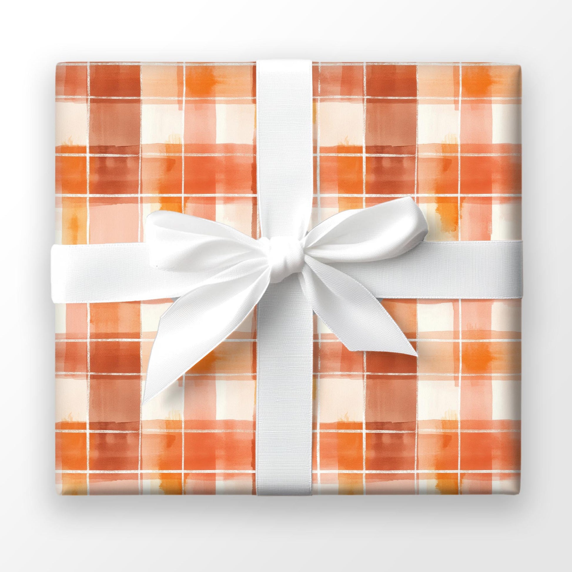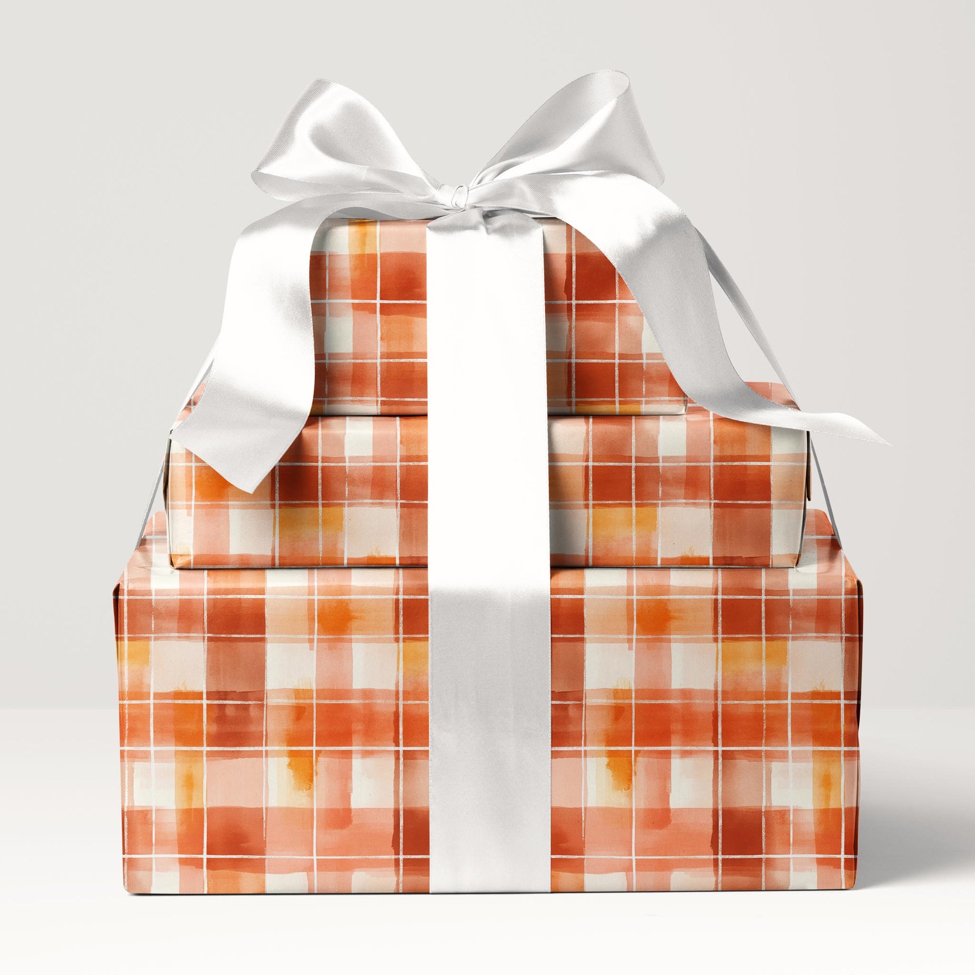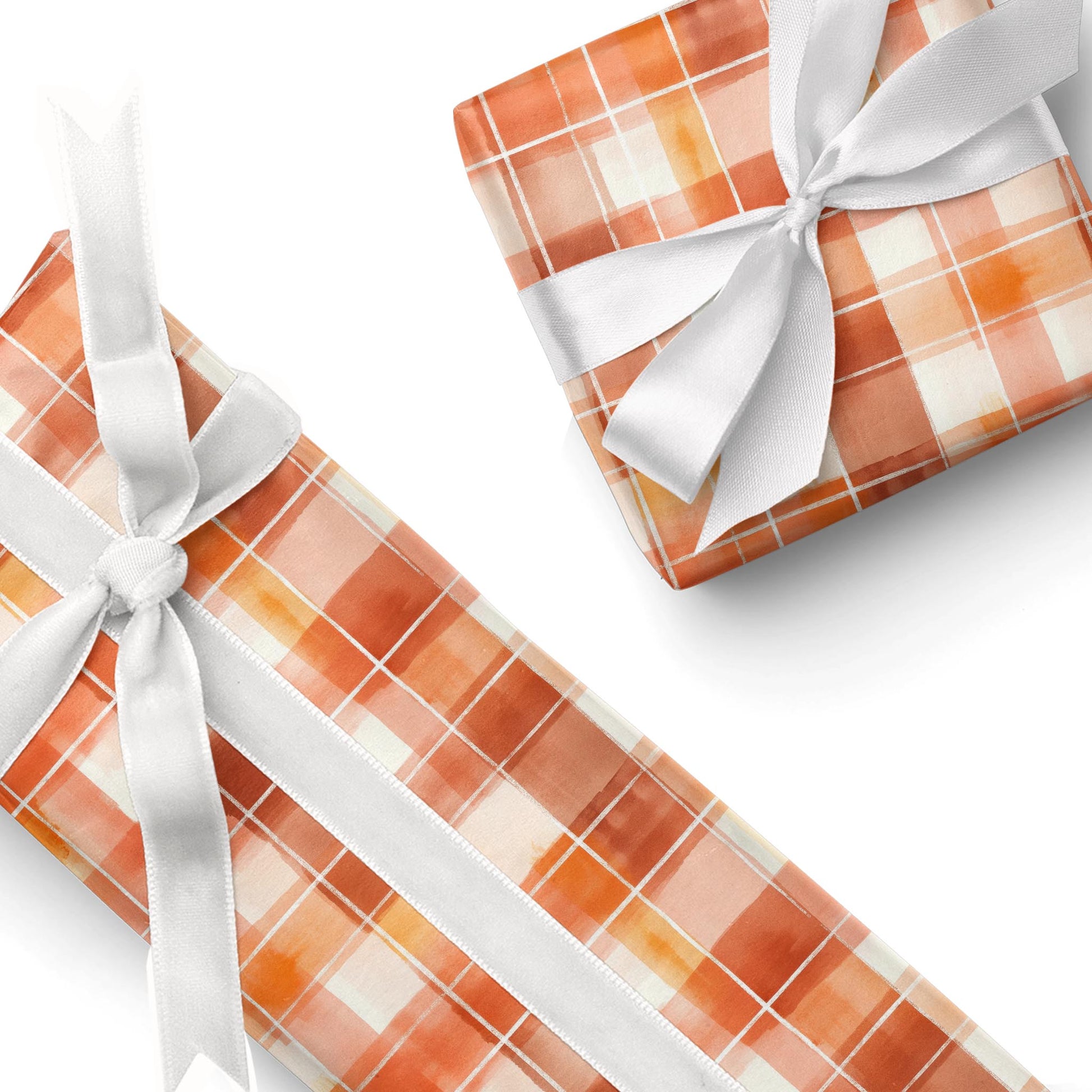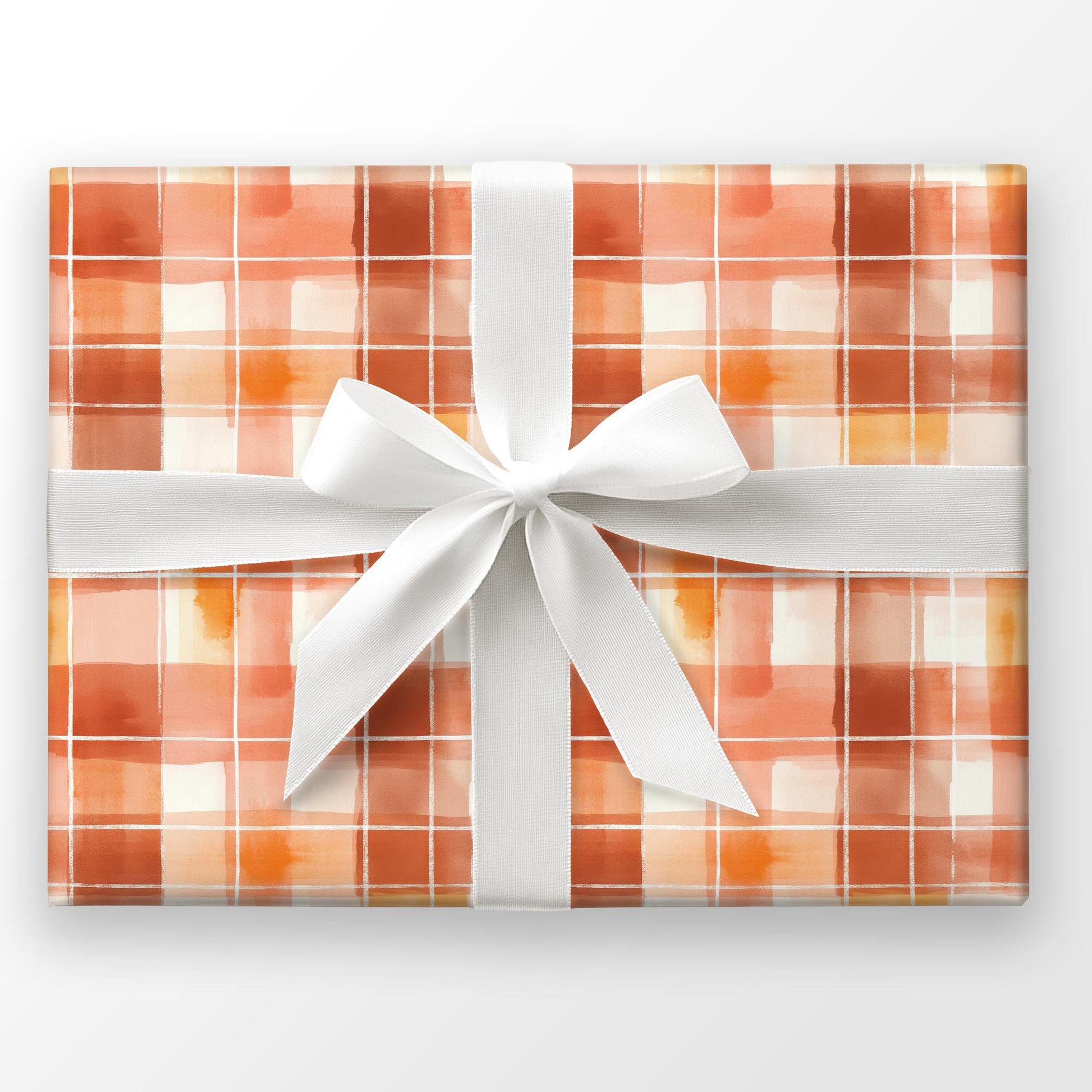 A classic plaid gets an autumn refresh in vibrant rust, orange, and cream brushstrokes.