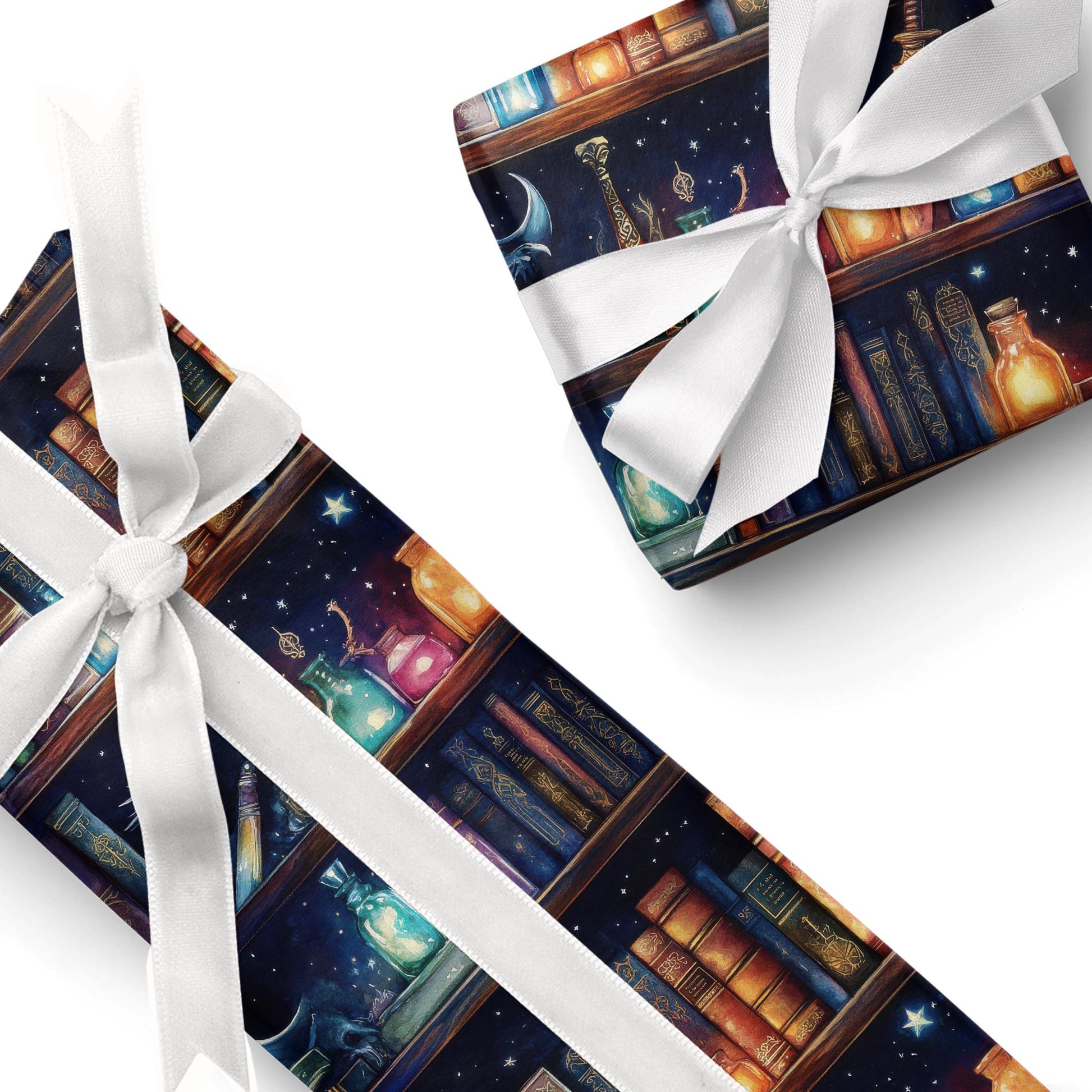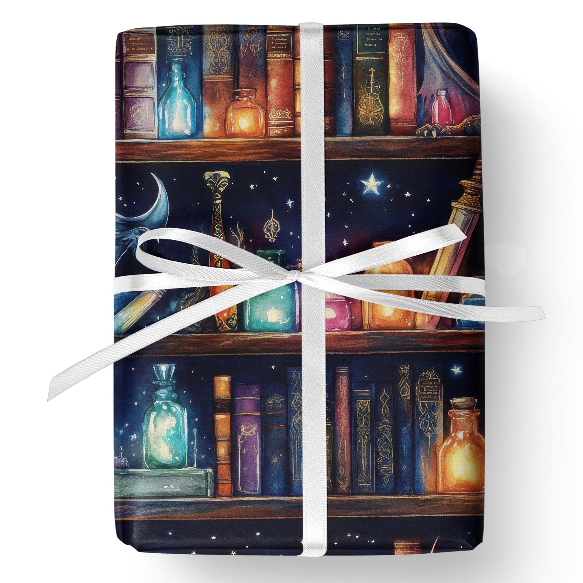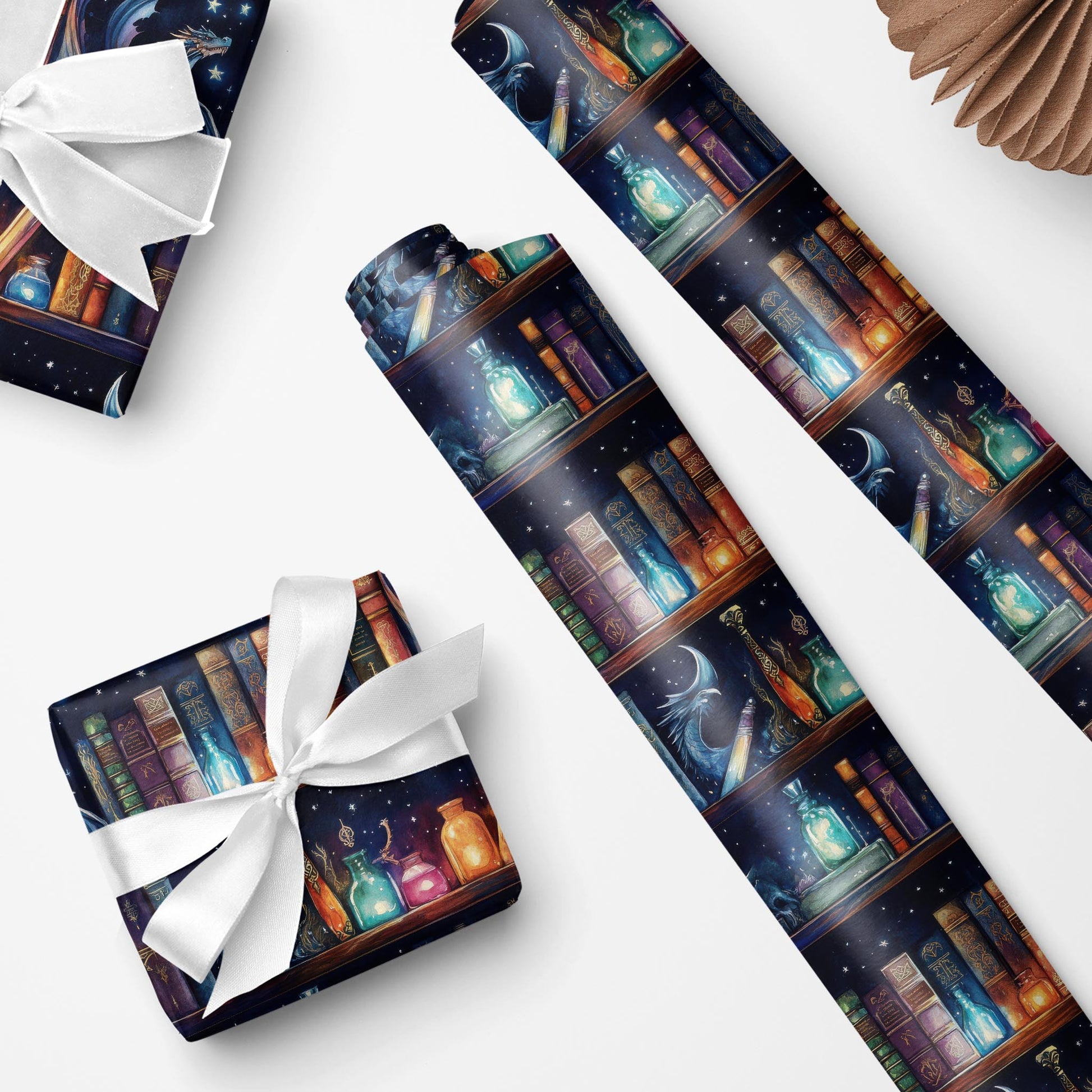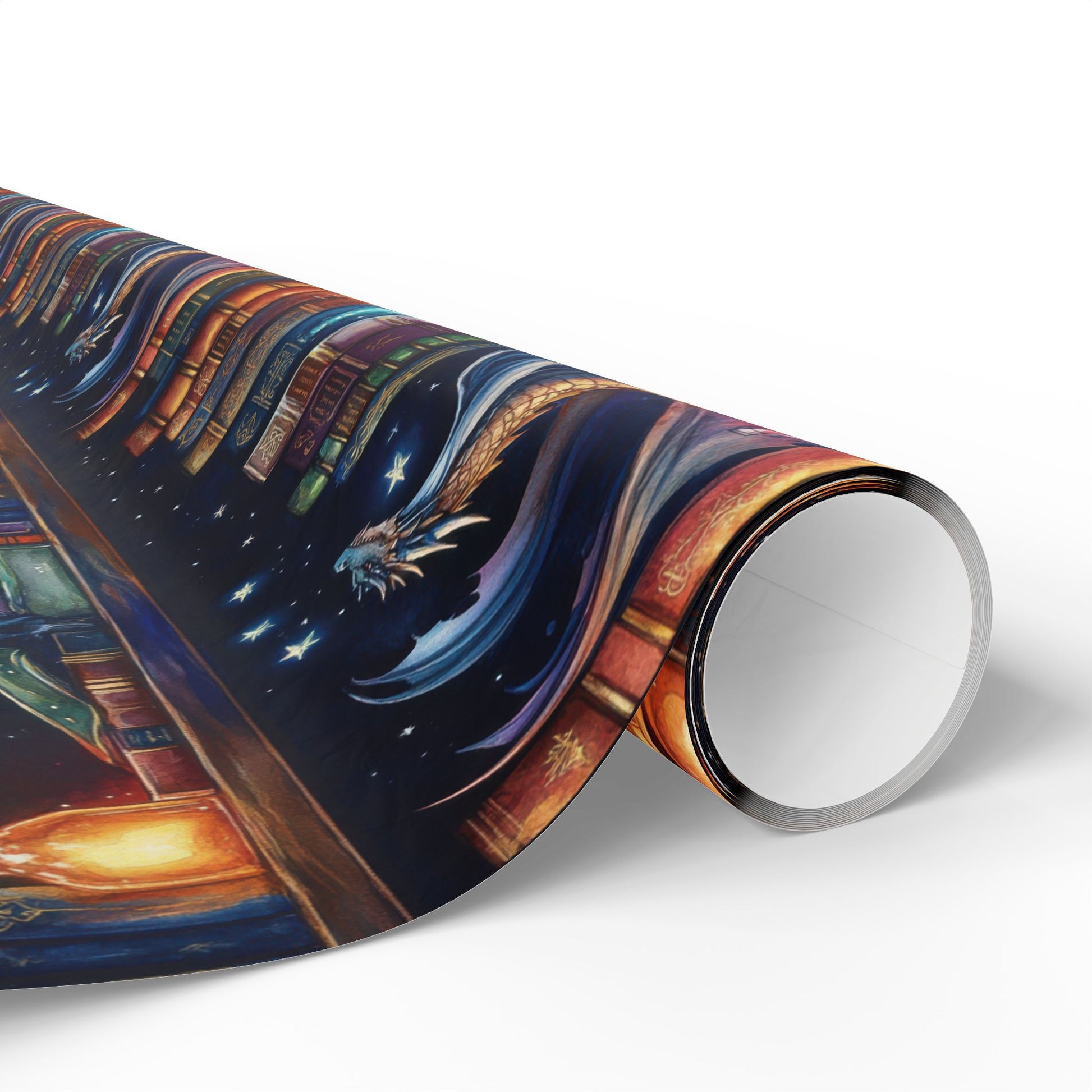Fantasy shelves glow with potions, dragon statues, and enchanted tomes. Dragon’s Keep is a magical wrap for fantasy fans, adventurous readers, and imaginative celebrations.