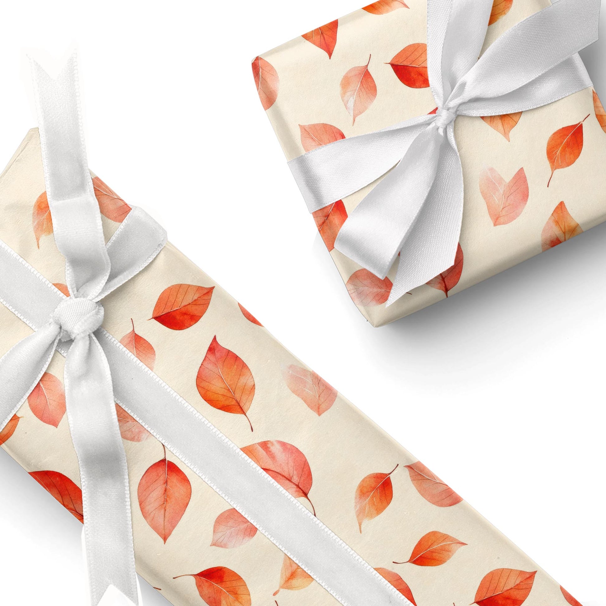 Falling Light offers a gentle, romantic take on autumn with scattered red and orange watercolor leaves.