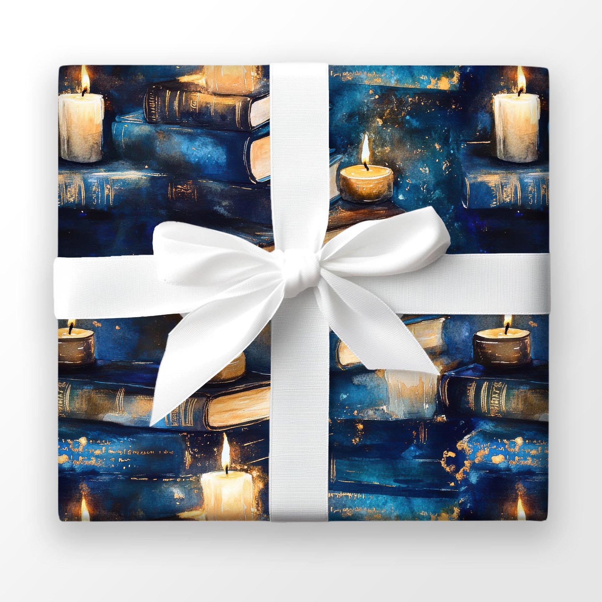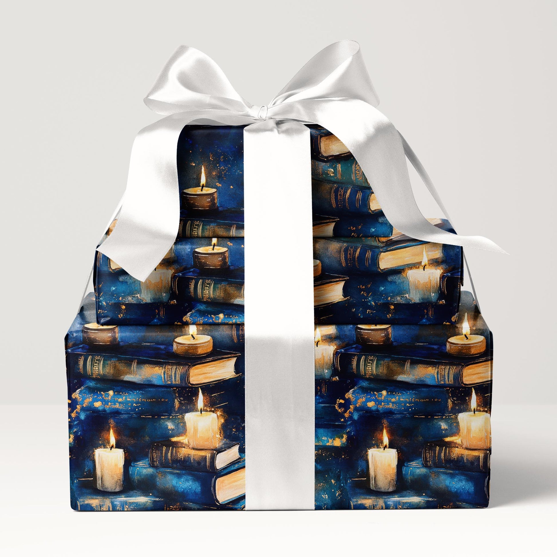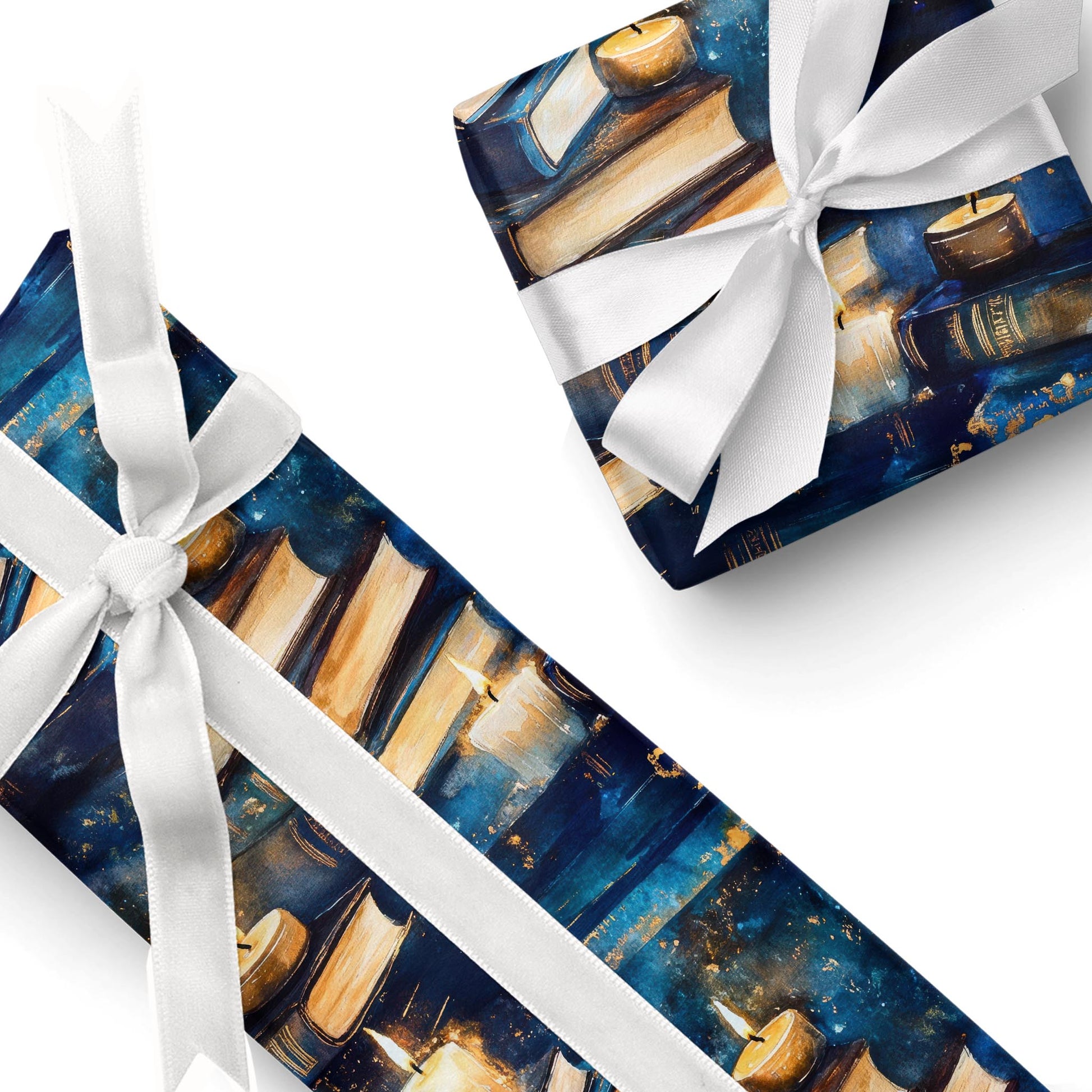 Stacks of books glow with candlelight in this warm watercolor repeat. Illuminated Library is a timeless wrap for classic readers and cozy evenings.