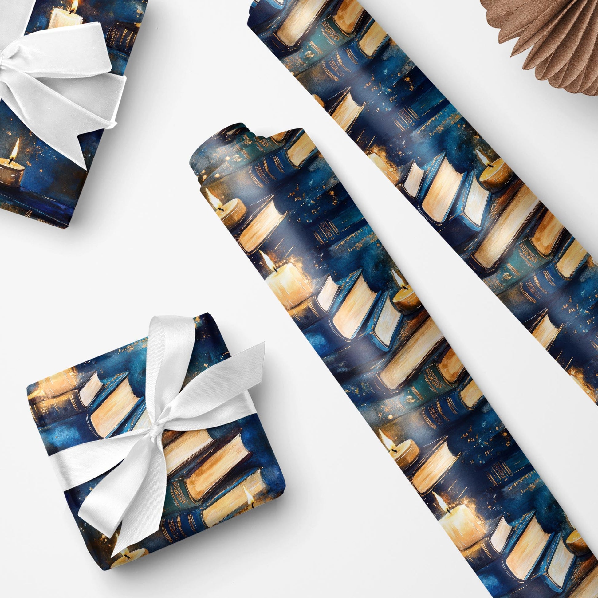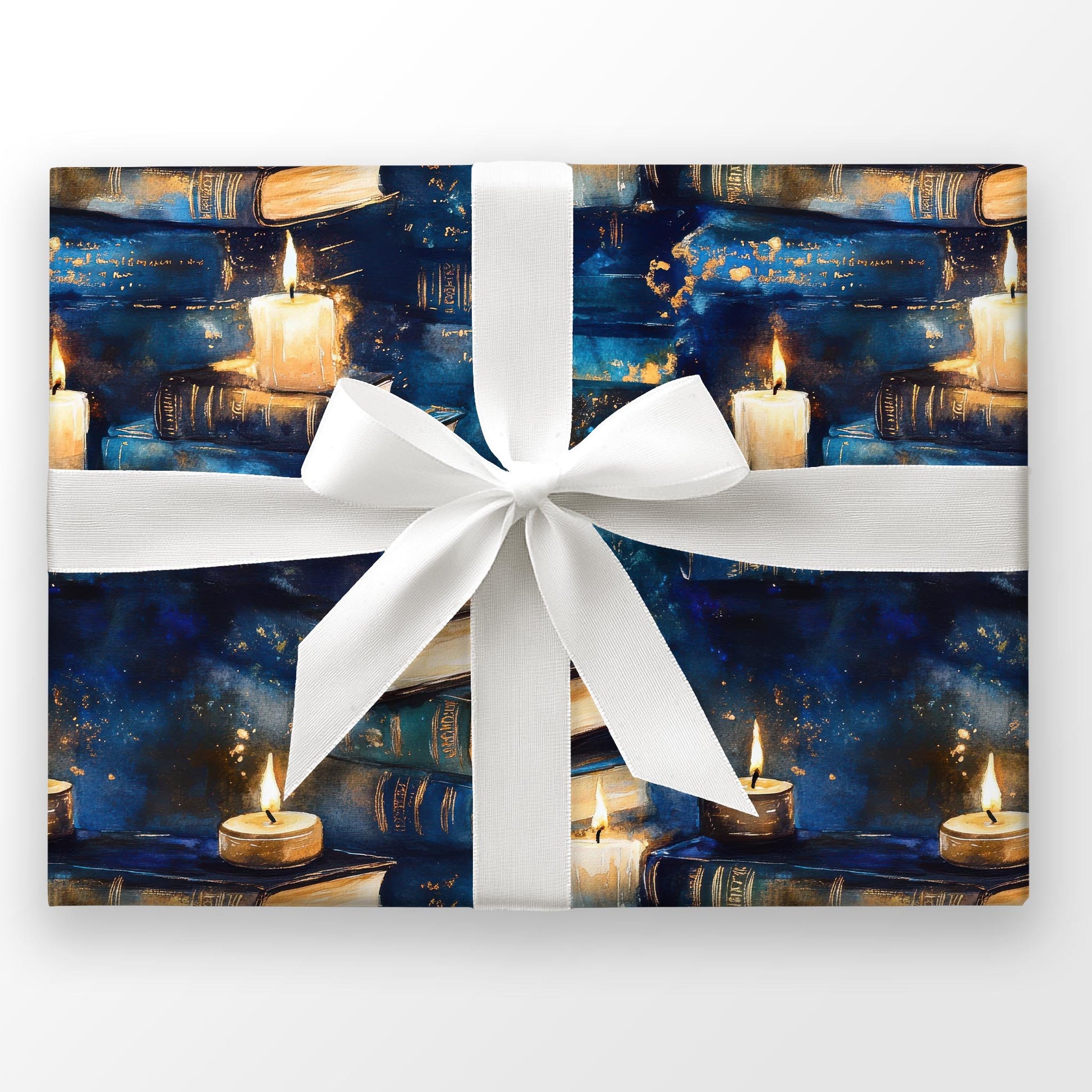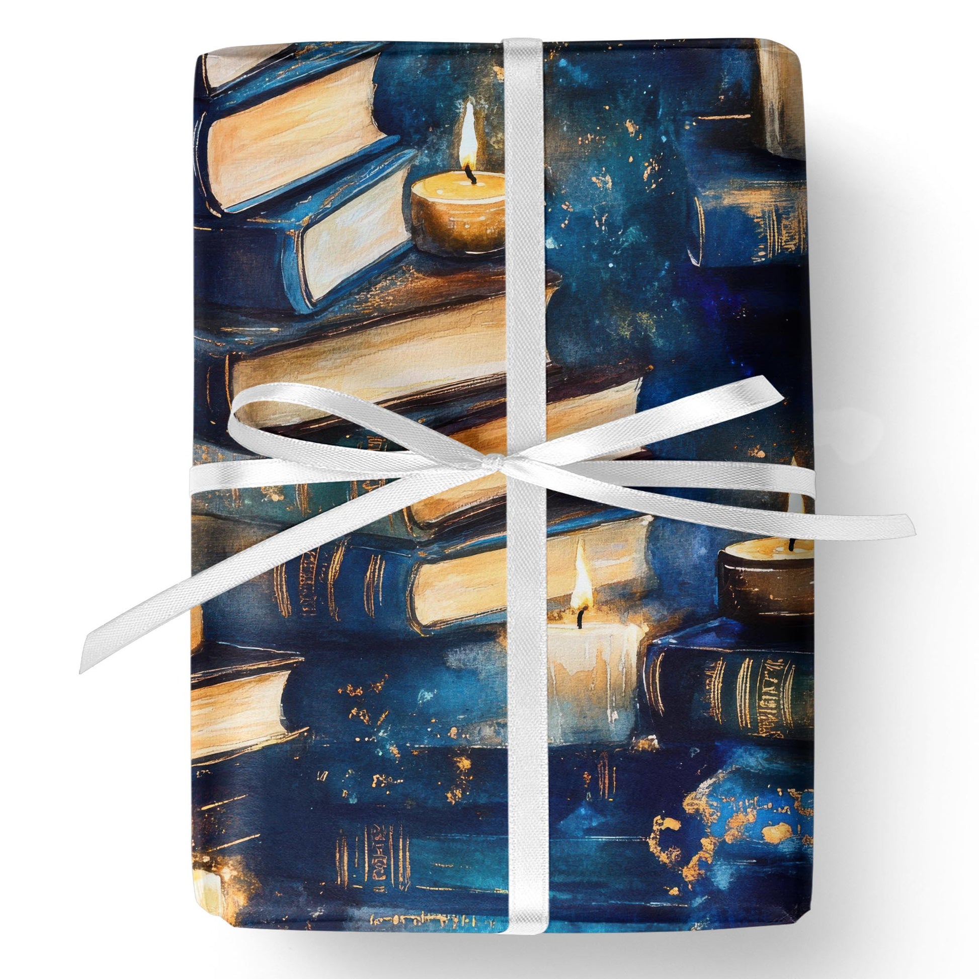 Stacks of books glow with candlelight in this warm watercolor repeat. Illuminated Library is a timeless wrap for classic readers and cozy evenings.