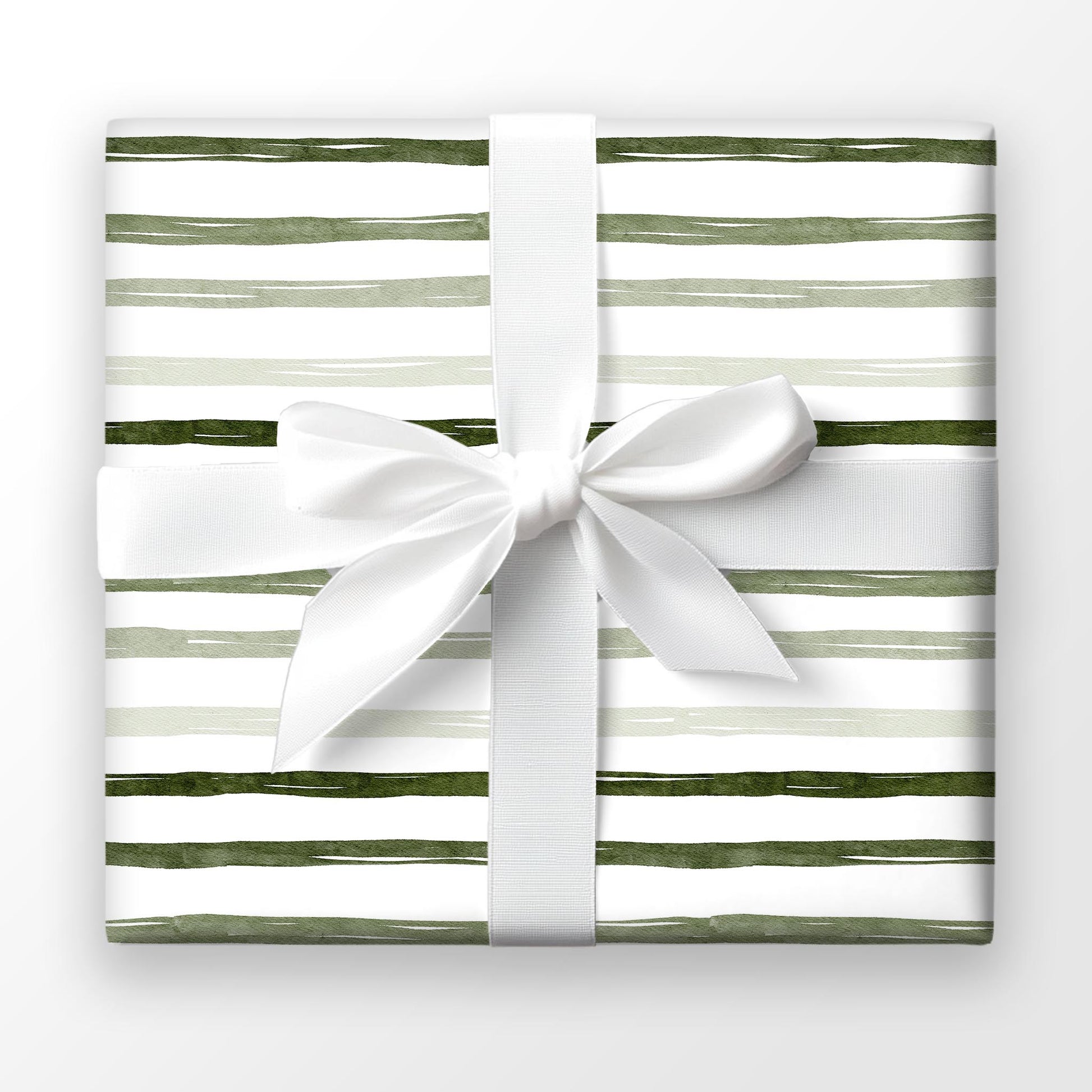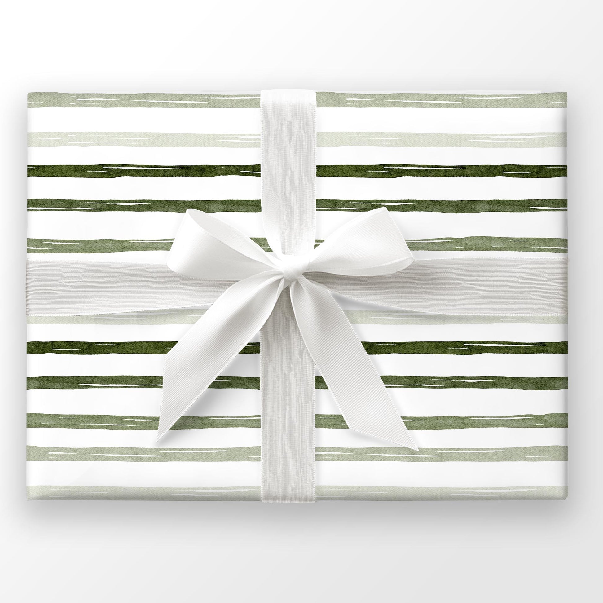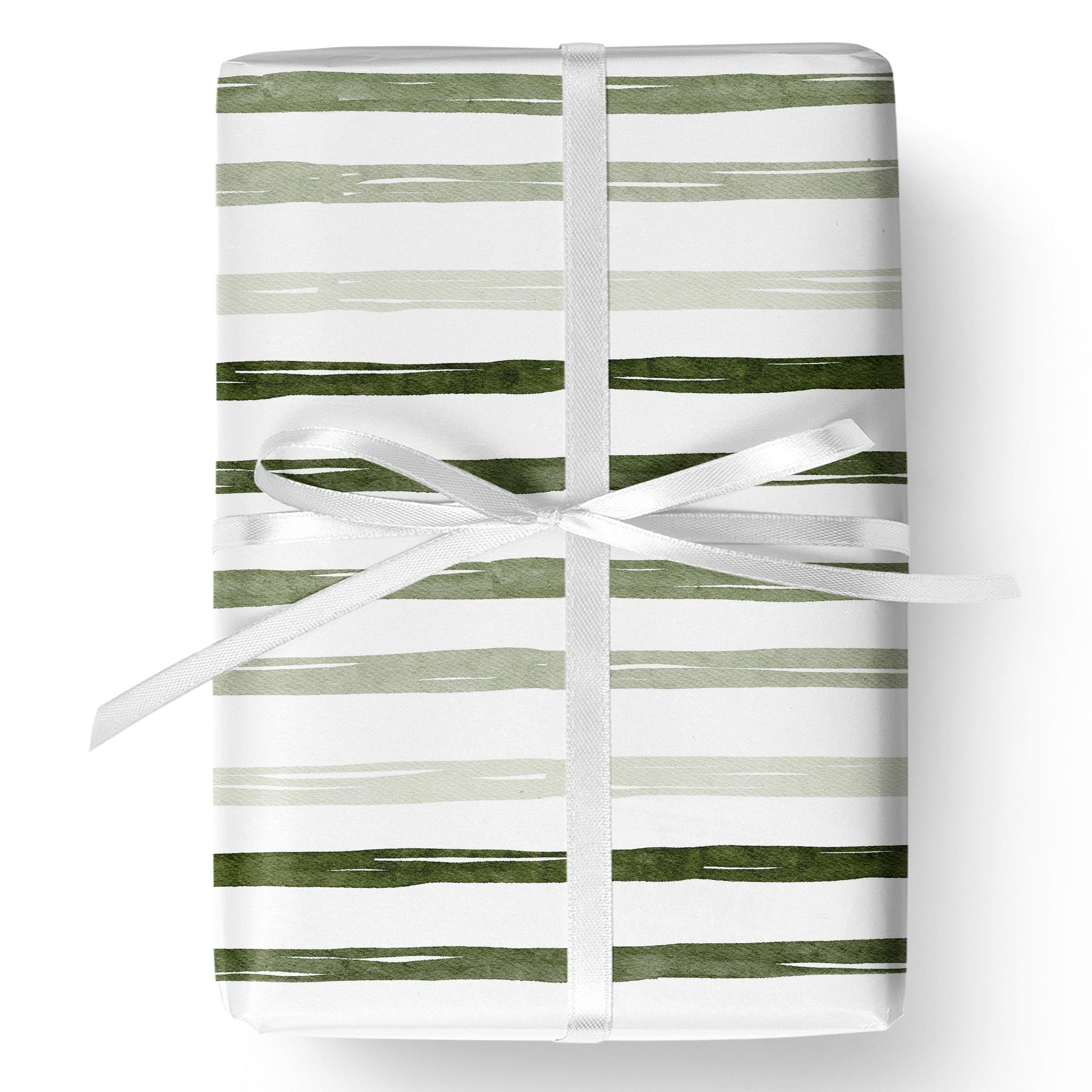 Sage and hunter green watercolor stripes drift across white in Overland Stripe — a clean, outdoorsy wrap perfect for Father’s Day, Christmas, or rugged year-round gifting.