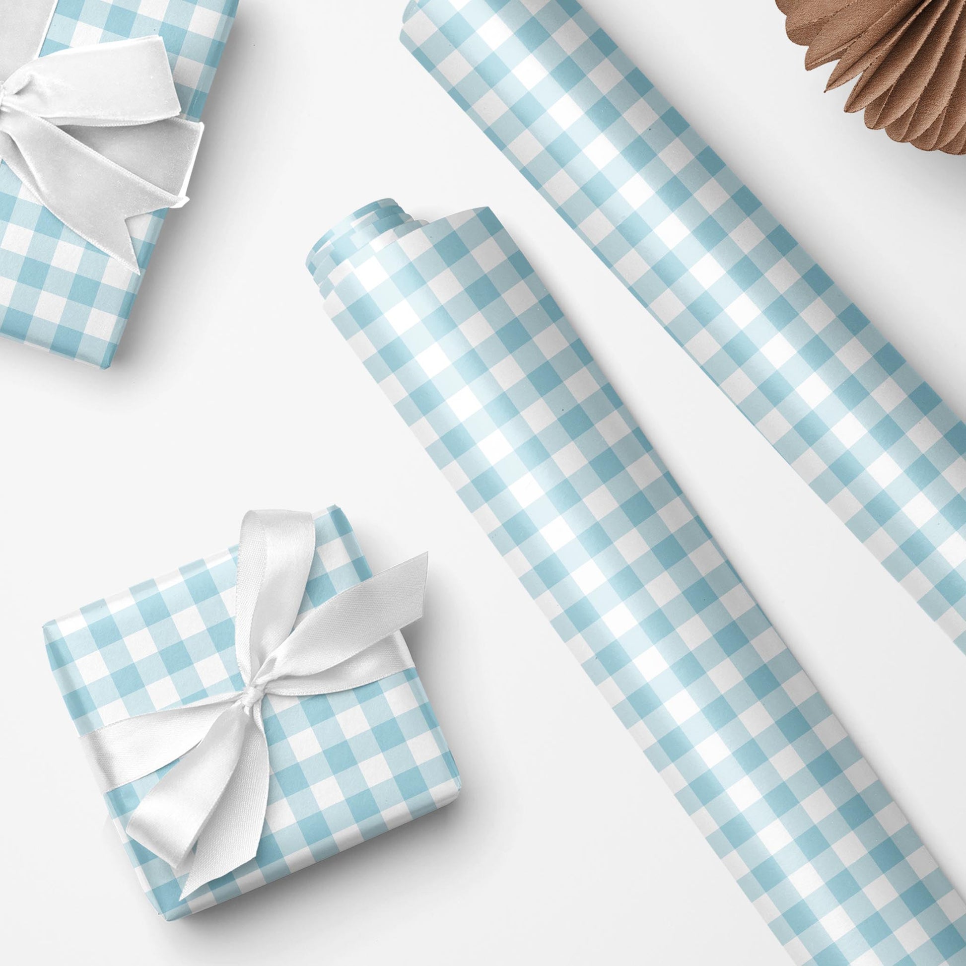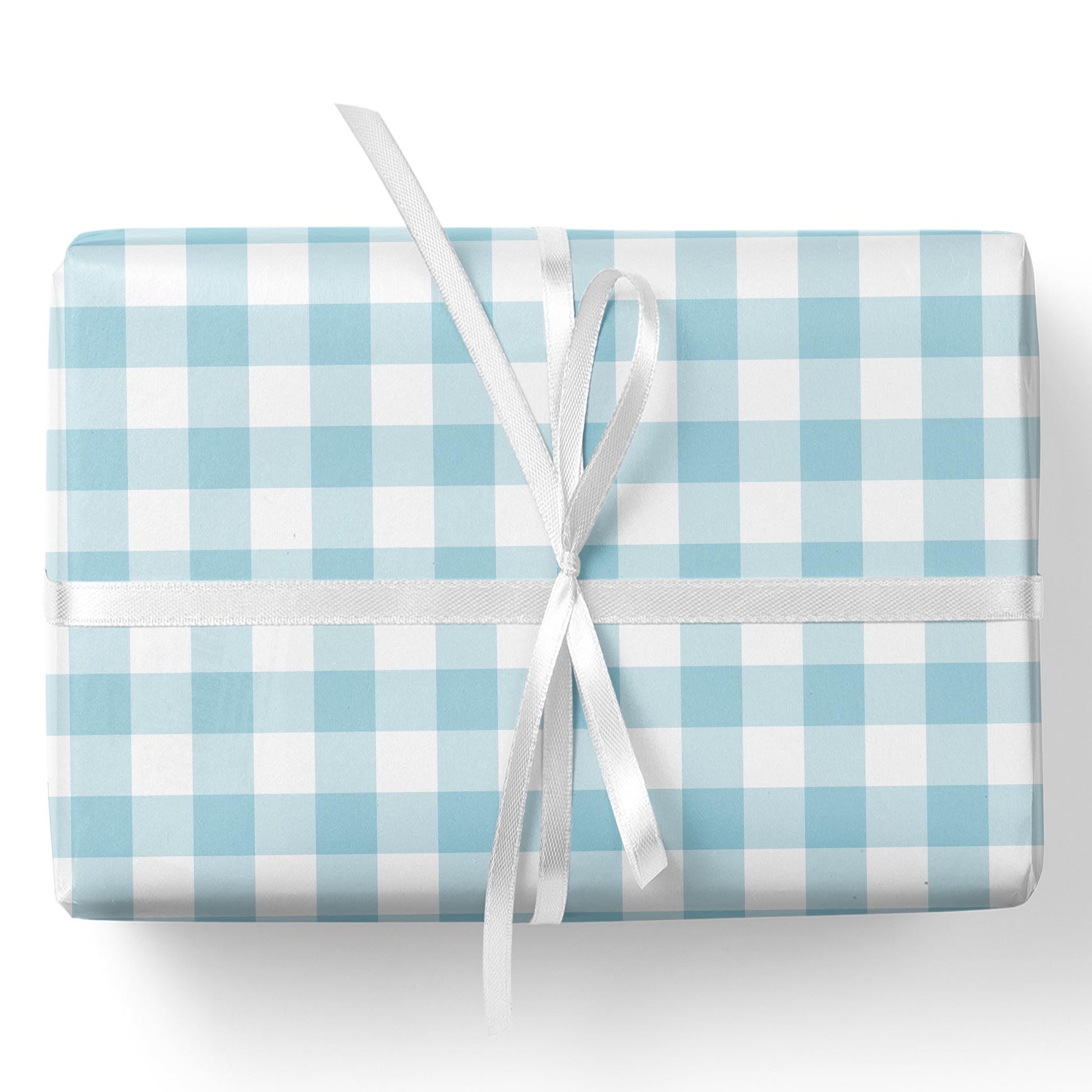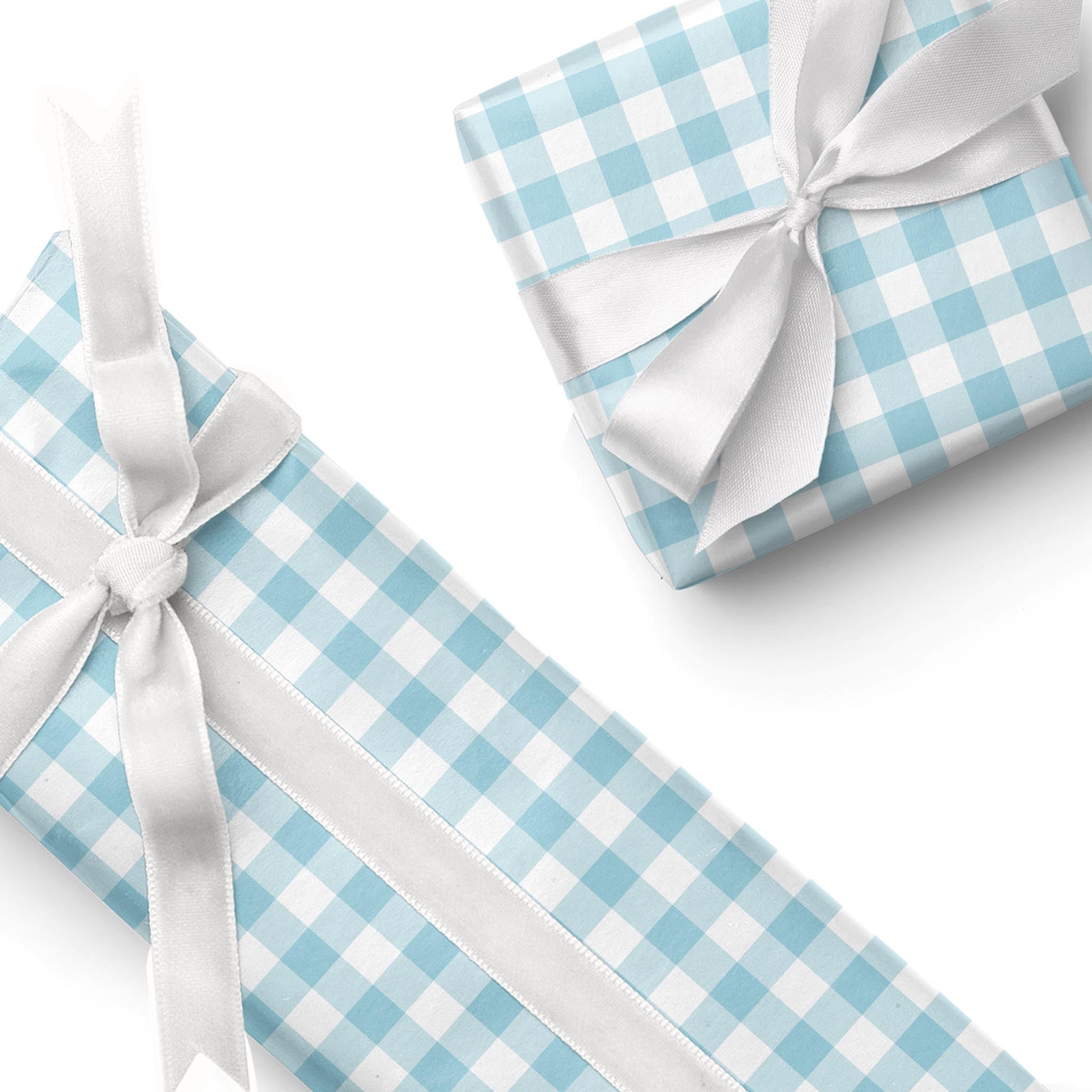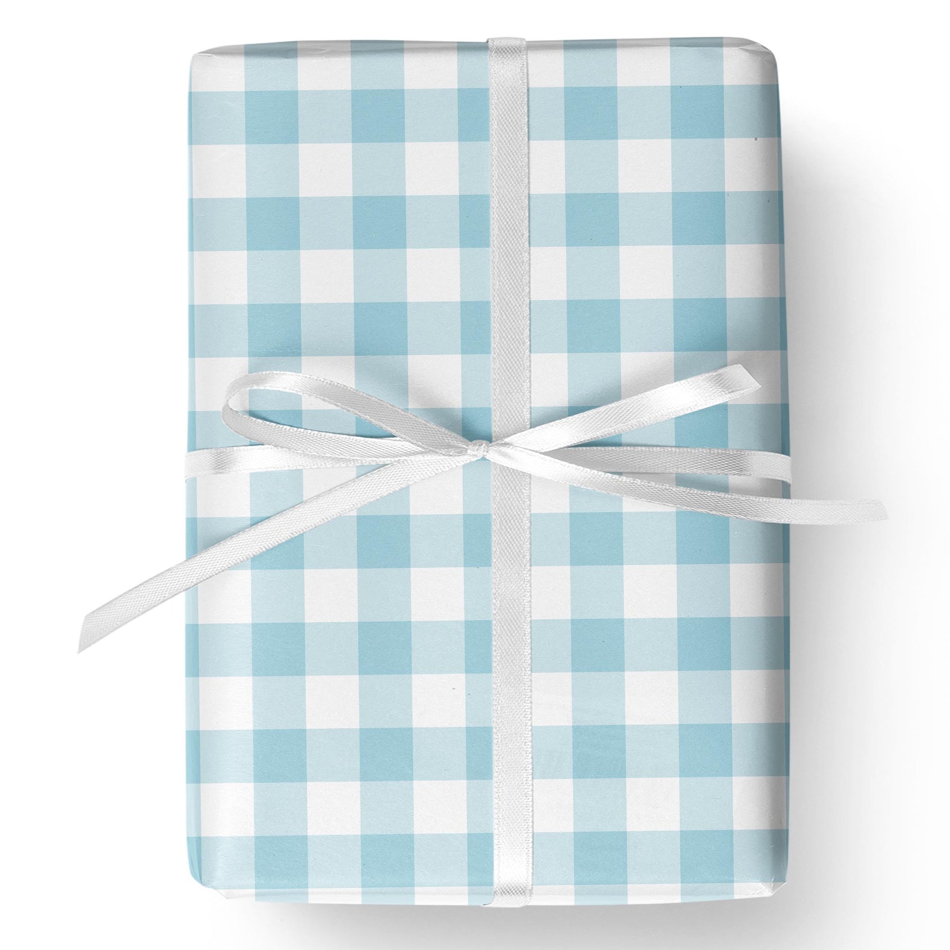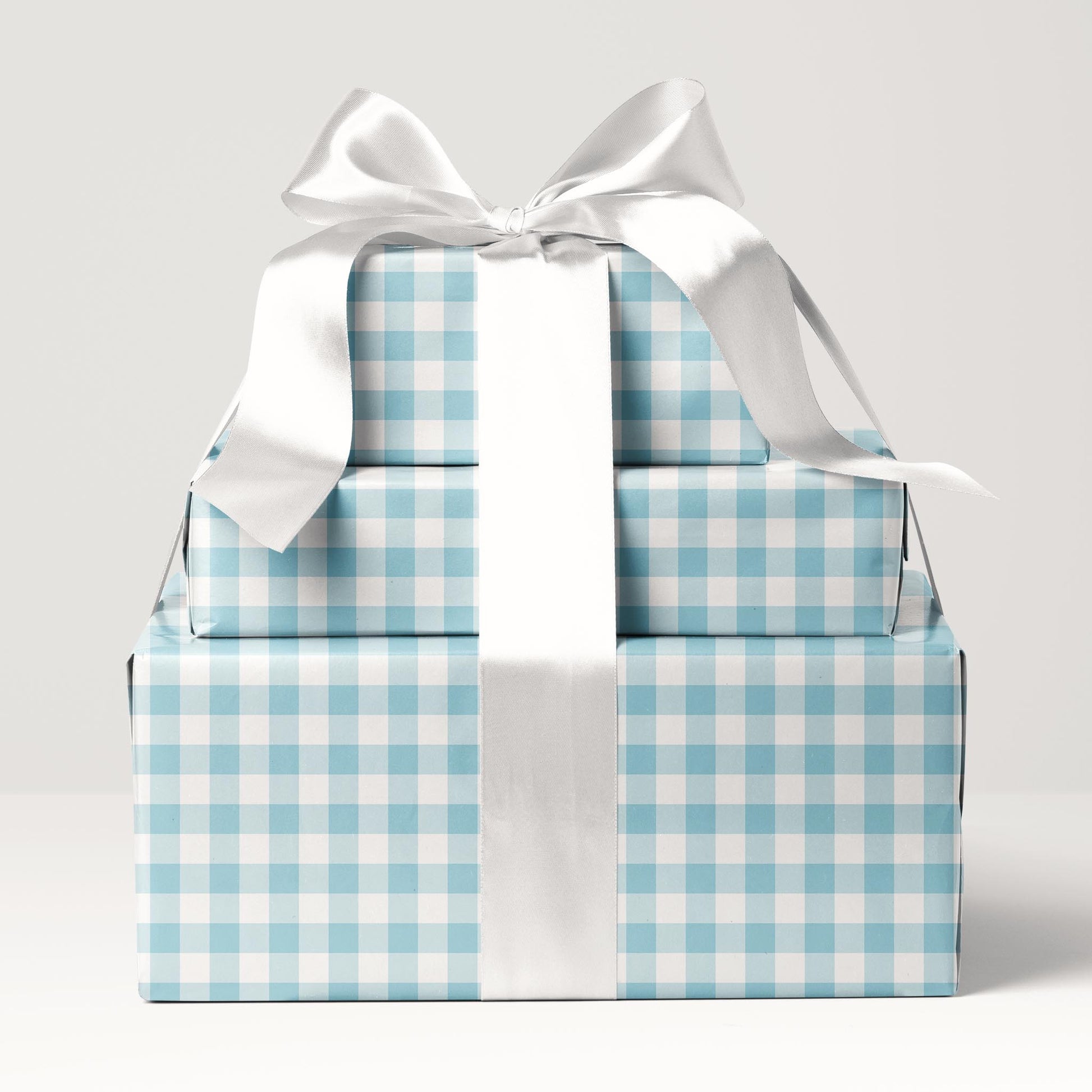 A classic light blue gingham brings fresh charm to Poolside Check — a clean, gender-neutral wrap perfect for summer birthdays, Father’s Day, or spring gifting.
