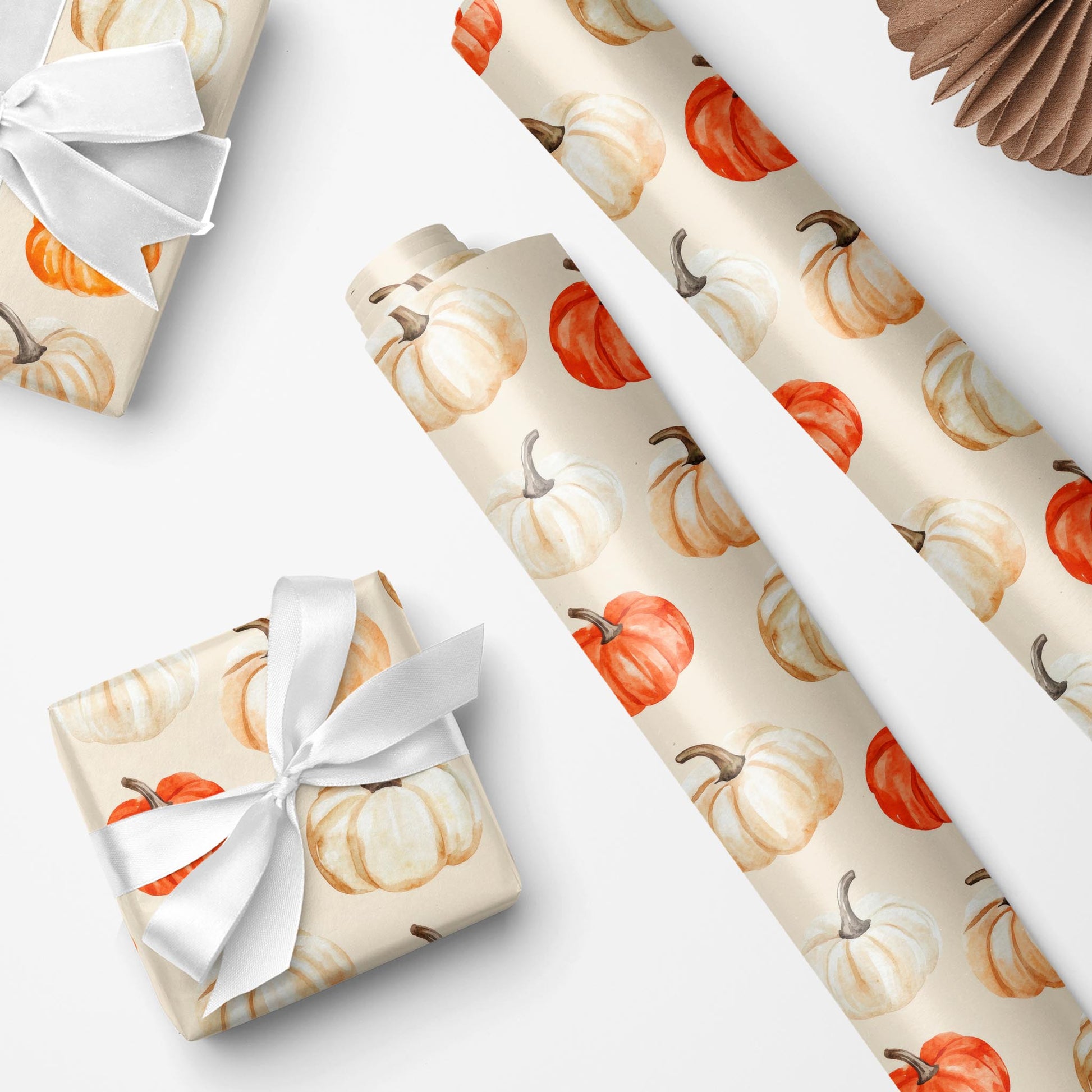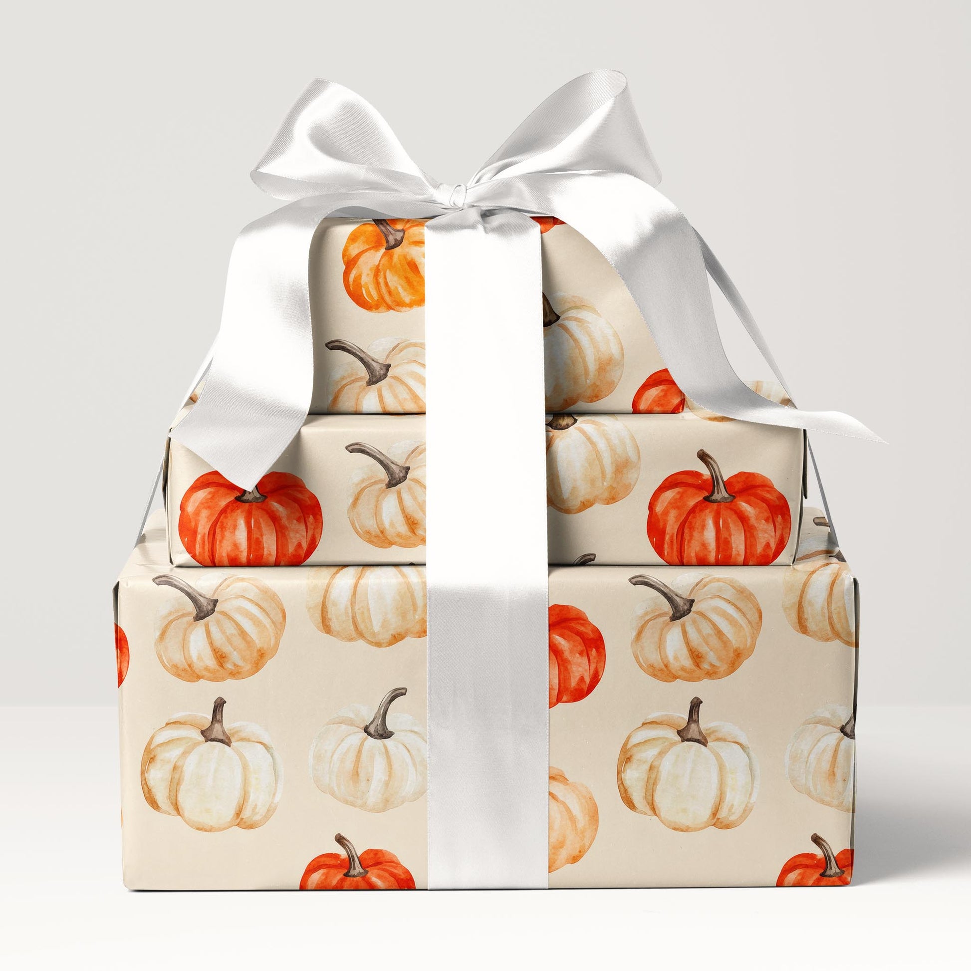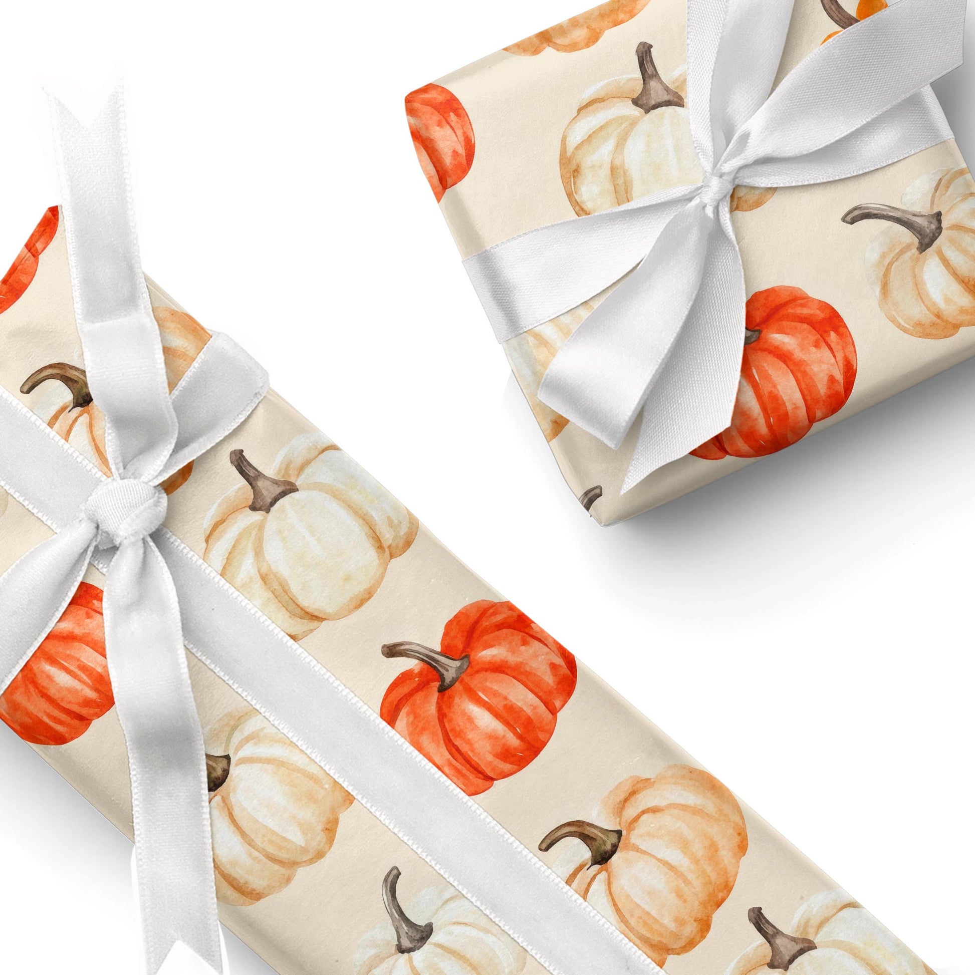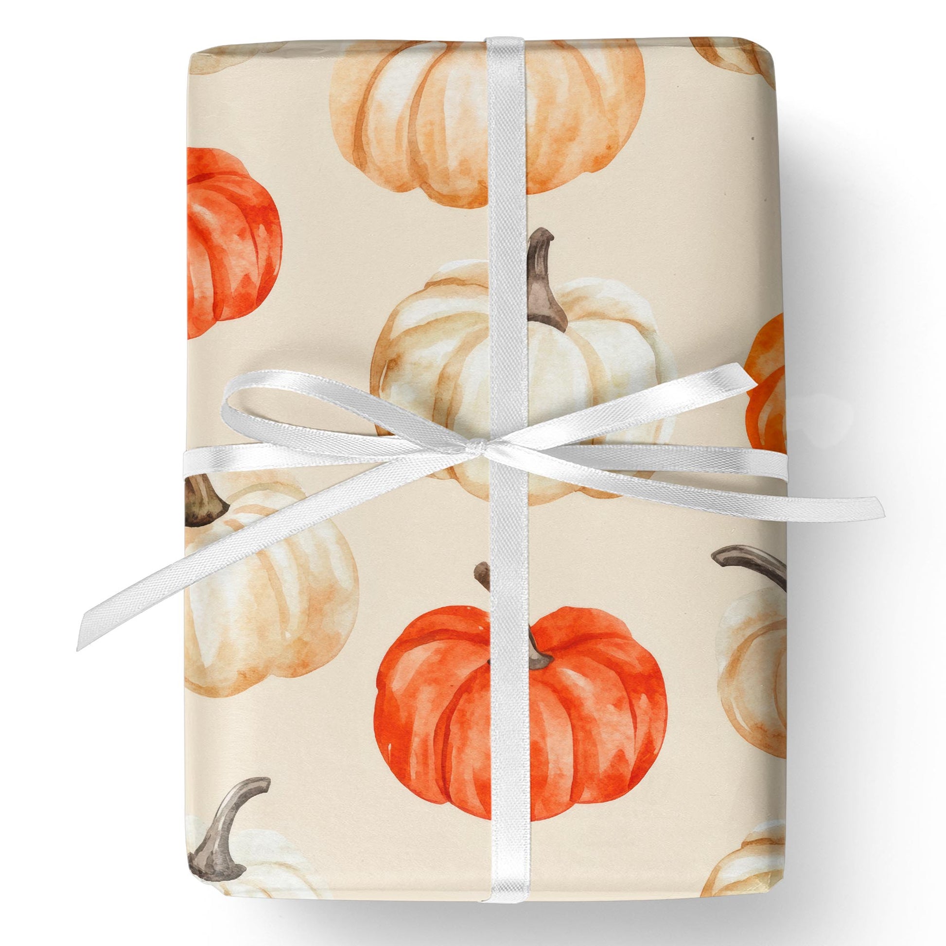 Orange and cream pumpkins pop against a soft backdrop in this fun, cheerful fall wrap.