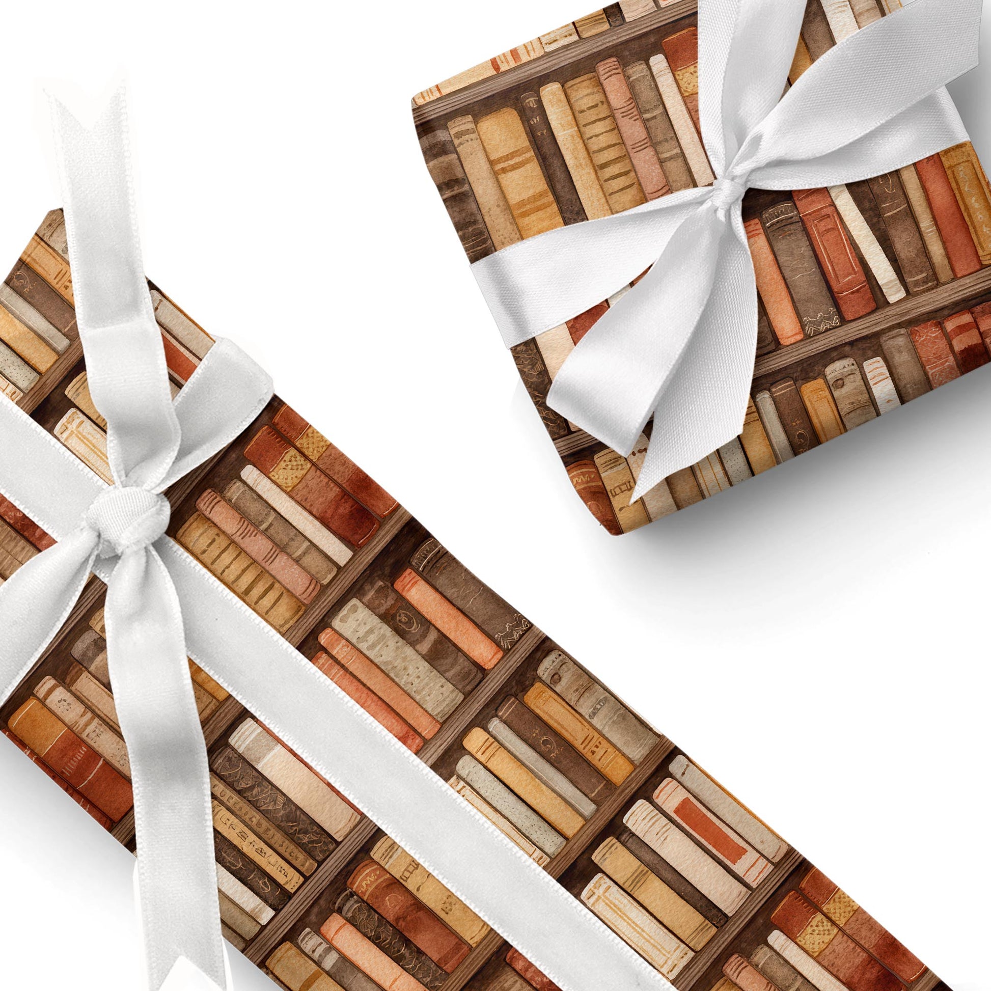 Rows of worn leather-bound books glow in sepia watercolor tones. Sepia Bindings is a nostalgic wrap for collectors, libraries, and vintage-inspired gifts.