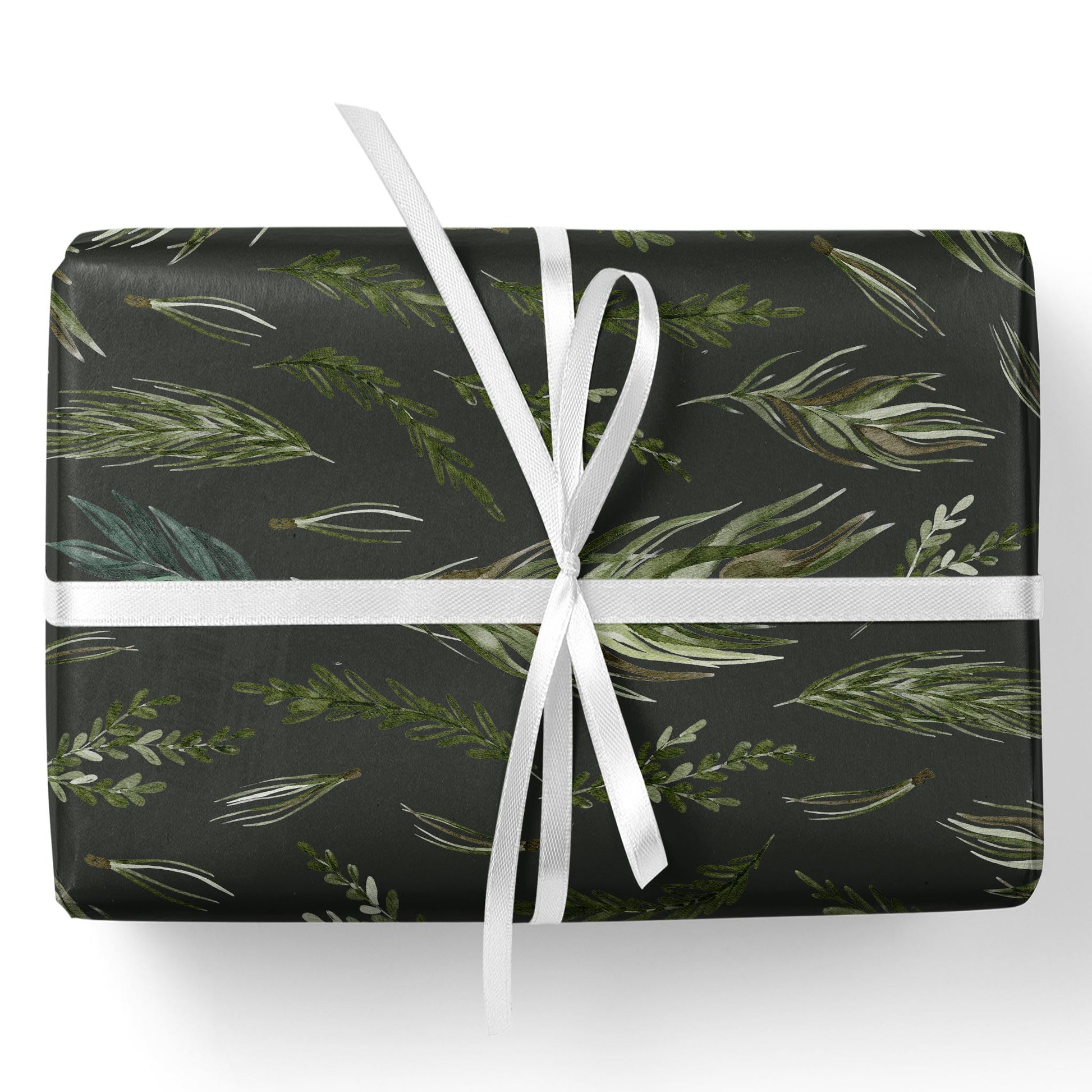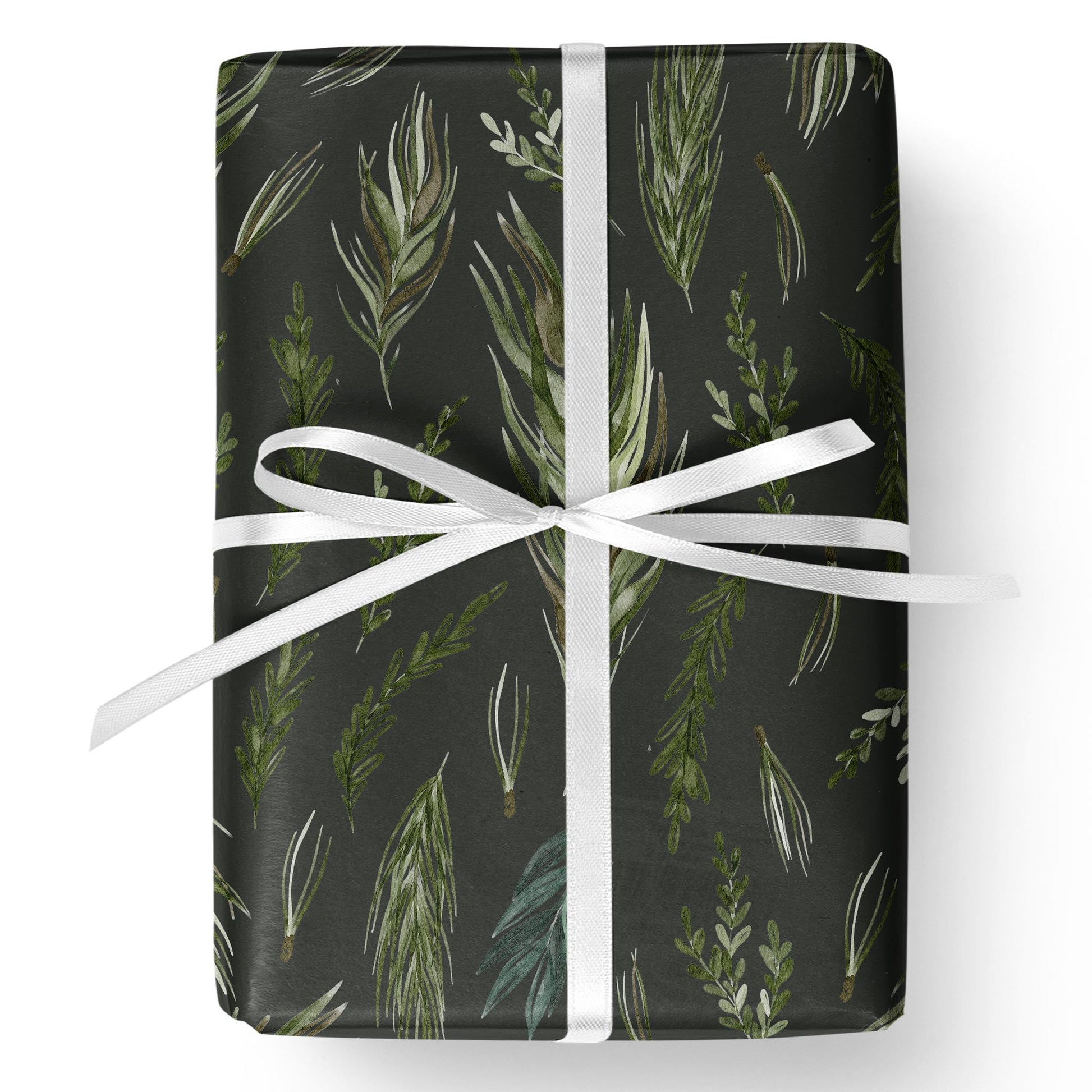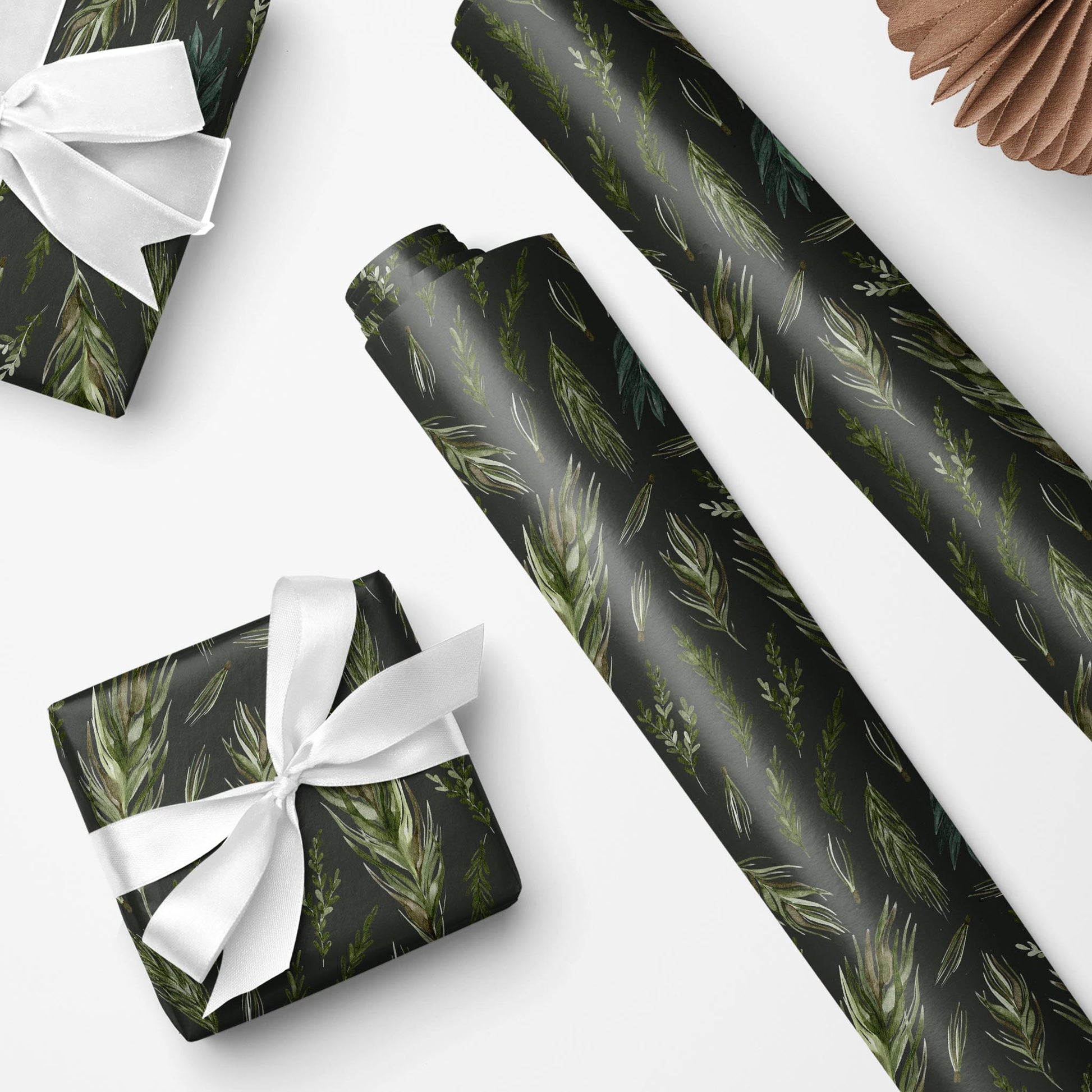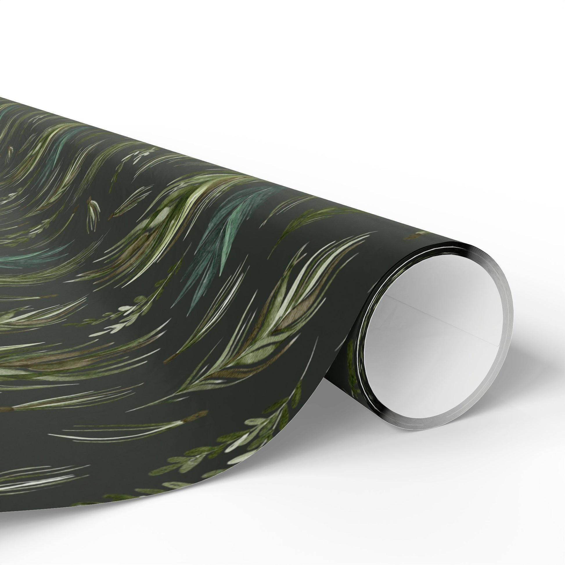 Dark pine sprigs stretch across a nearly black background in Shadowed Grove — a bold, masculine wrap with vintage woodland depth, perfect for Father’s Day or richly toned holiday gifting.