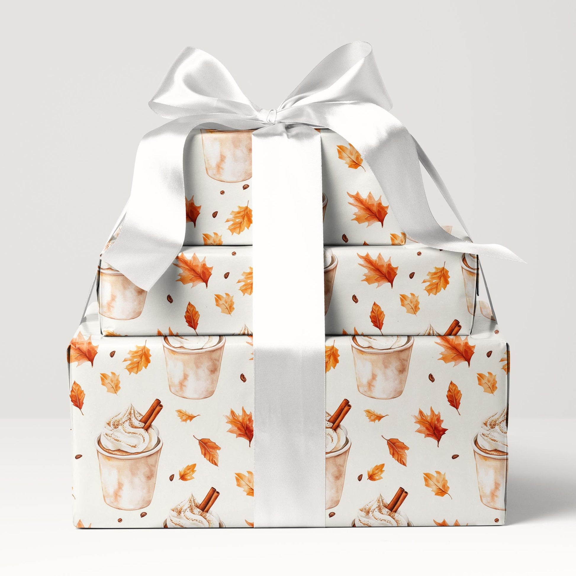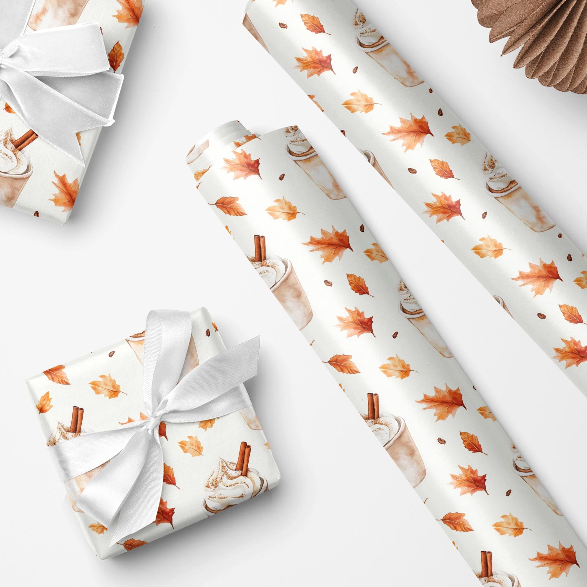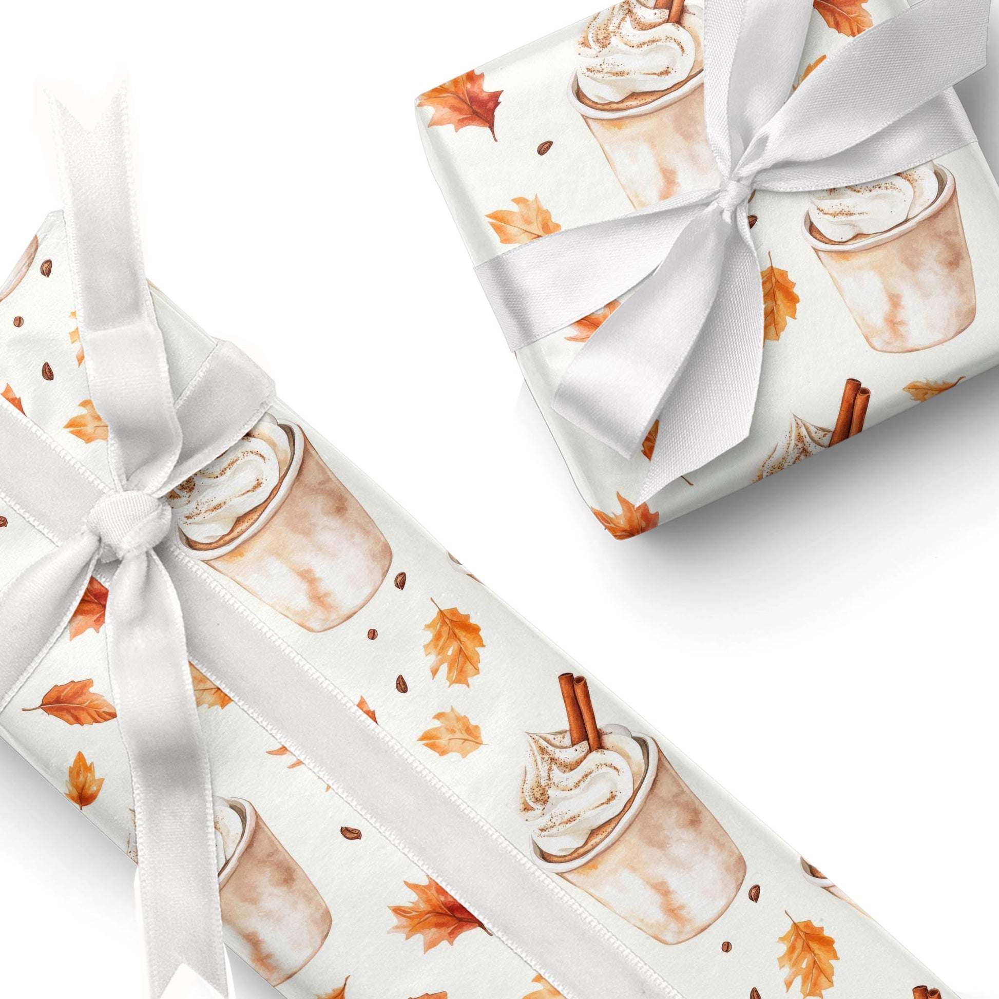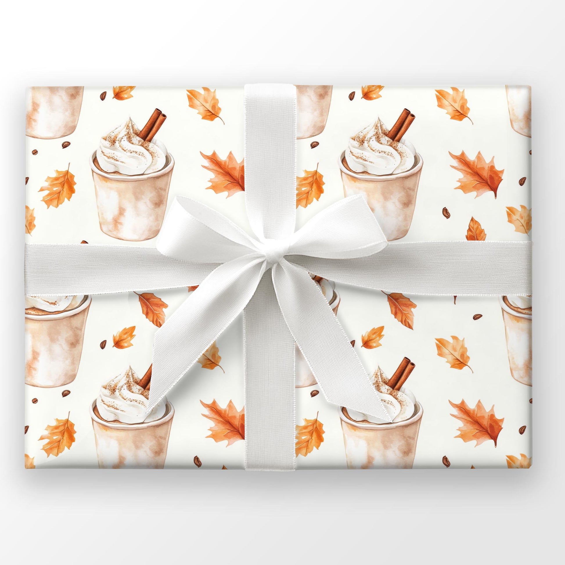 Celebrate the cozy season with Spiced Latte - a cheerful print of cinnamon drinks and falling maple leaves.