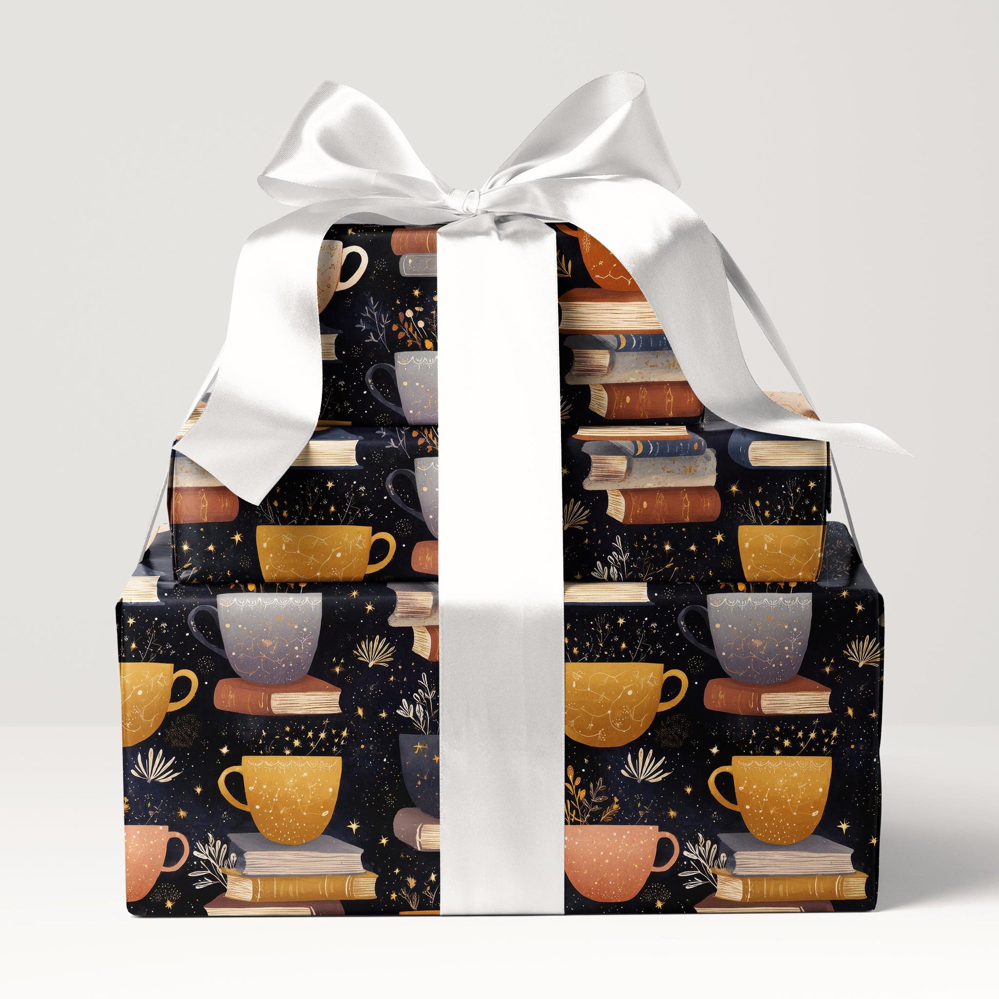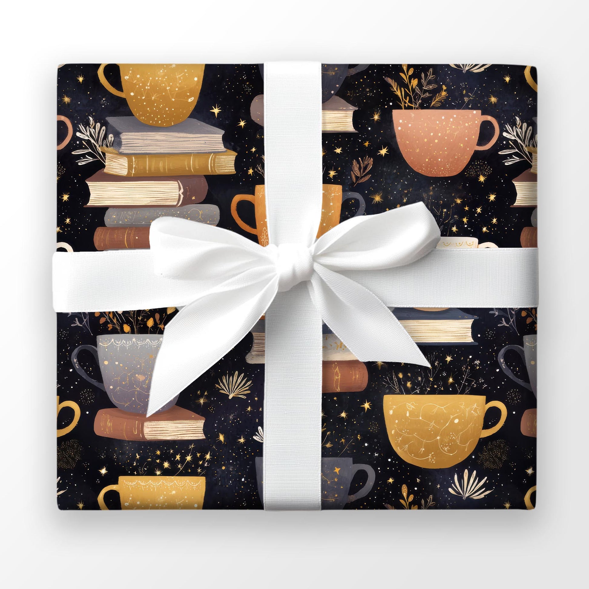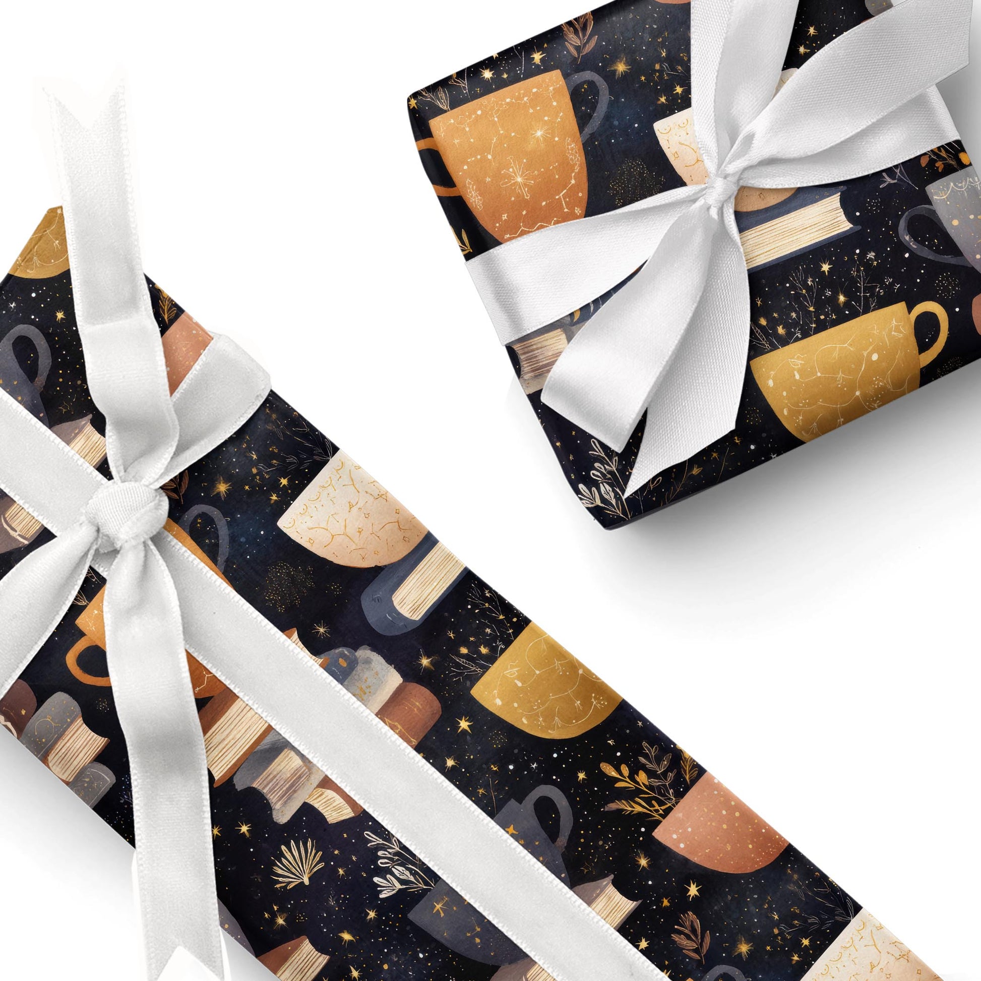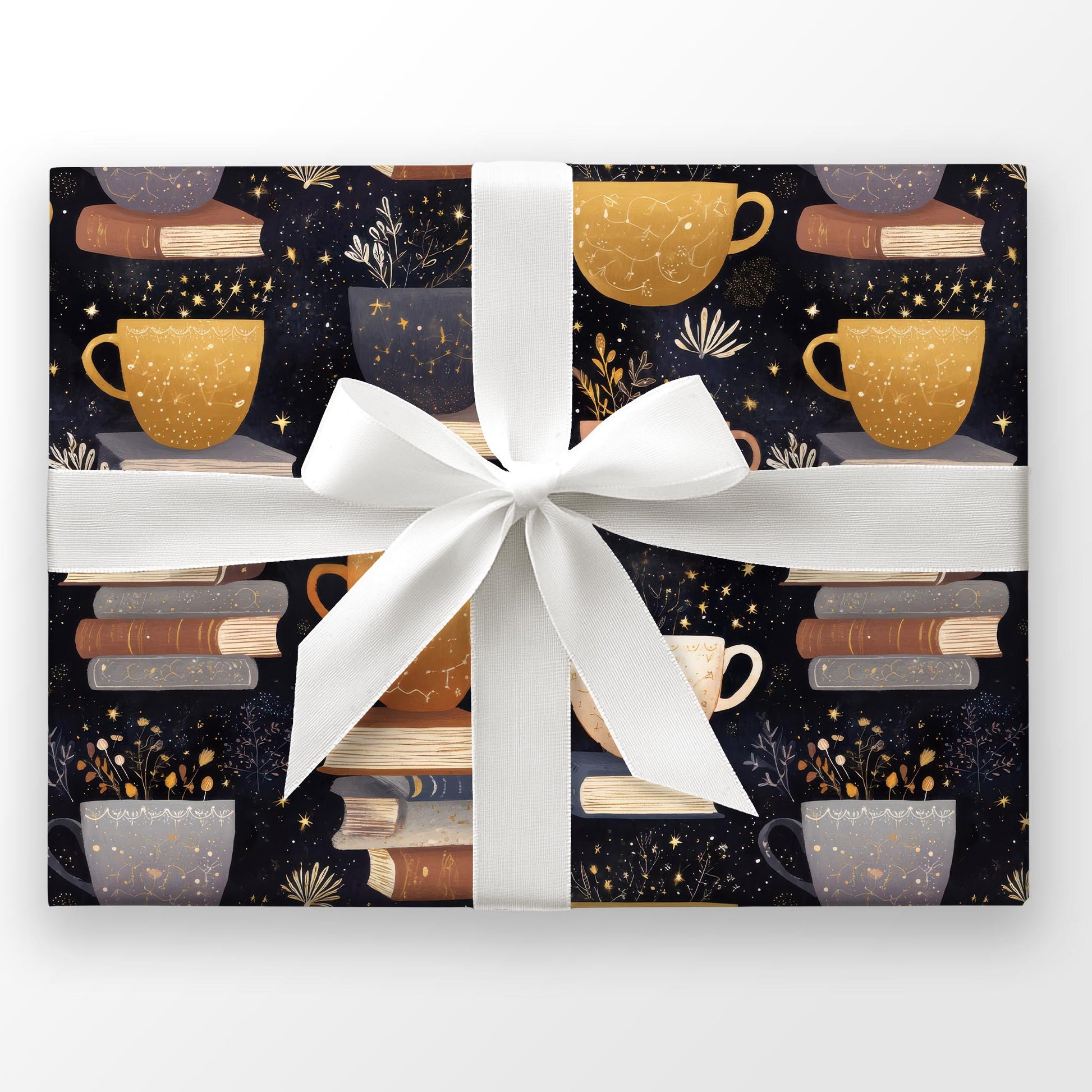 Teacups and books shimmer with constellations against a midnight backdrop. Stargazer Sips is a celestial wrap for dreamers, stargazers, and fantasy readers.